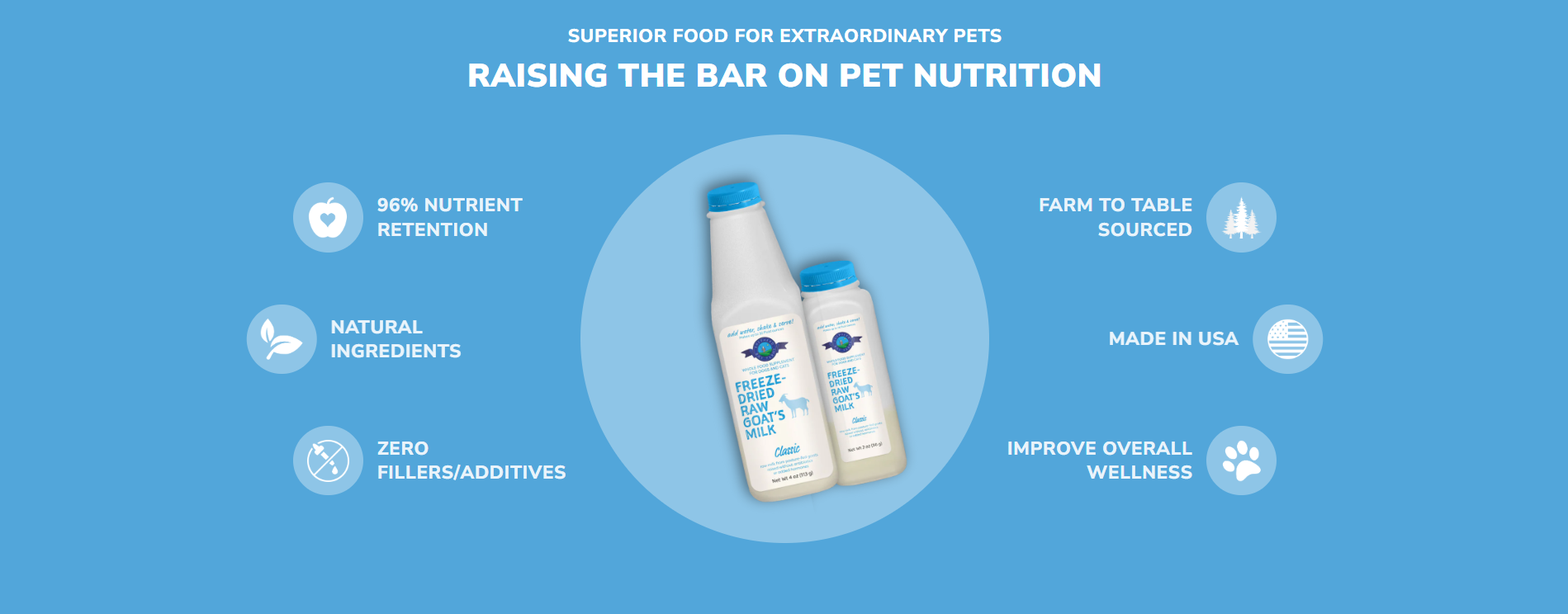 A: All of our dog food, treats & goat milk are single-ingredient human-grade pet treats, containing only meat from USA-raised animals following USDA guidelines. There are no added hormones or antibiotics. The treats are freeze-dried to lock in the maximum amount of nutrients for the highest-quality product available.