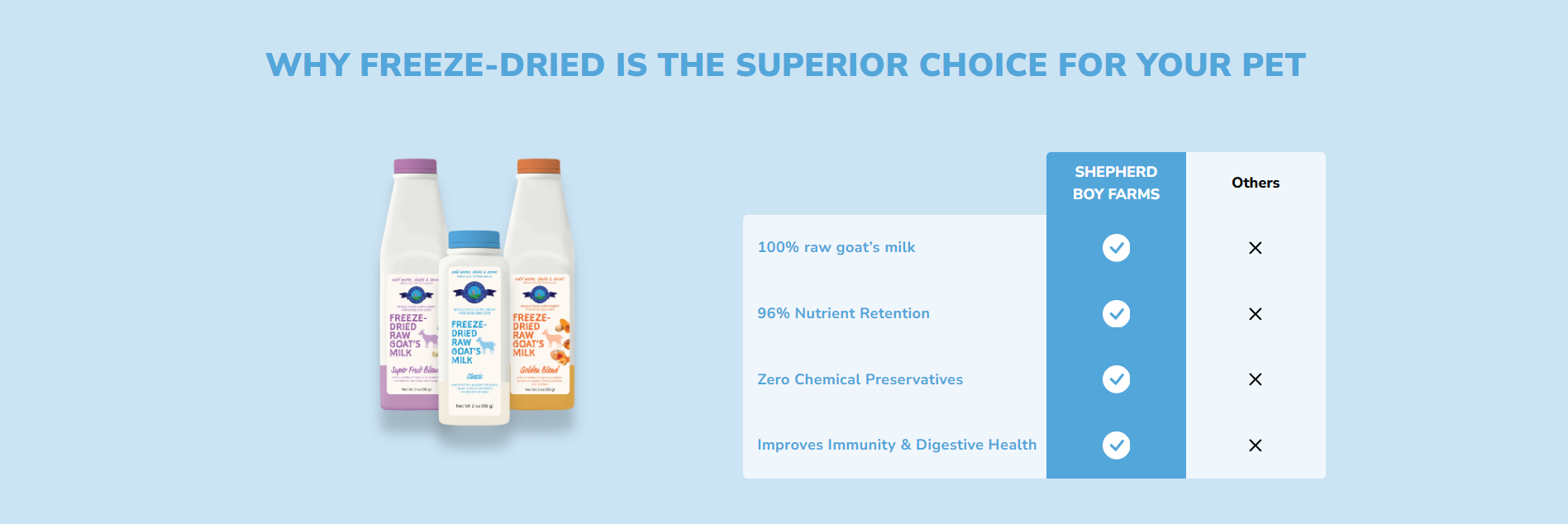 Freeze-dried goat milk retains more of the natural vitamins, minerals, and probiotics compared to dehydrated alternatives, offering enhanced nutritional benefits and a fresher taste.